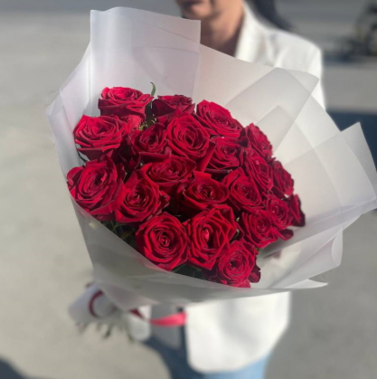 Букет из 21 красной розы с оформлением